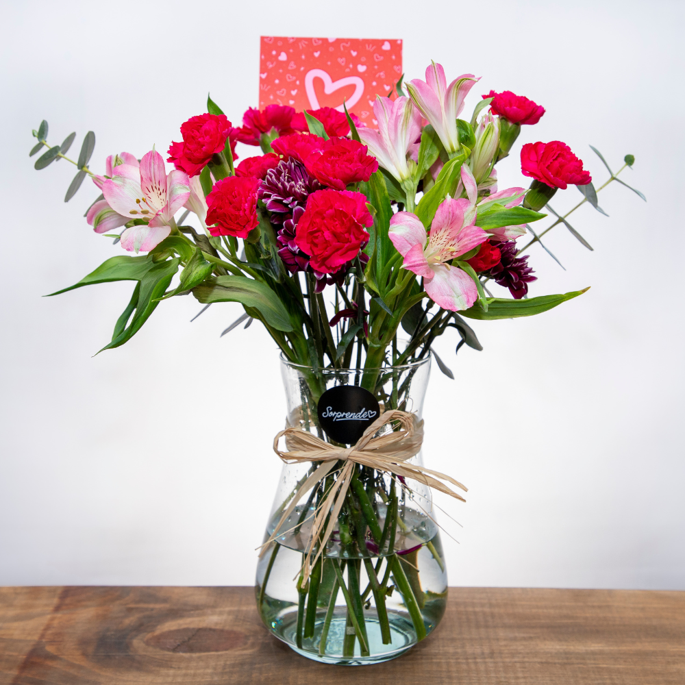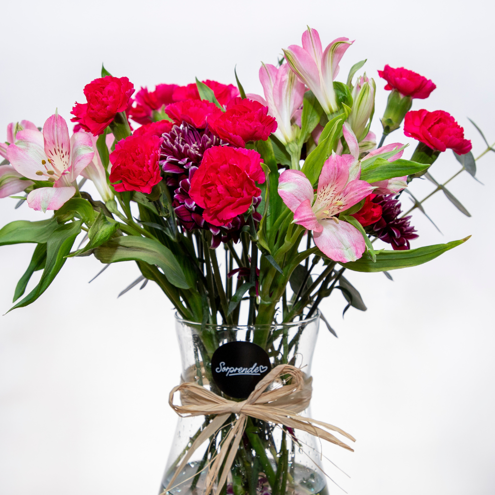 Un mix delicado de flores como Astromelias, mables y mini claveles.